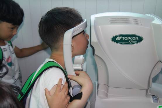 除了趣味十足的繪畫(huà)活動(dòng),志愿者還帶孩子們了解了診療檢查區(qū),不少小朋友紛紛舉手立志將來(lái)也要當(dāng)個(gè)醫(yī)生,幫助更多的人,也希望更多的人眼睛健健康康。最后,眼科專(zhuān)家們還為孩子們進(jìn)行了視力普查,在視力檢查過(guò)程中,眼科專(zhuān)家時(shí)不時(shí)囑咐他們平時(shí)多做眼保健操、少看電視,并強(qiáng)調(diào)要從小保護(hù)好自己的雙眼才能擁有健康的眼睛。