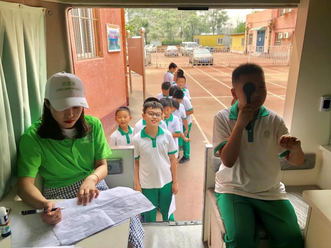 6月17日下午,伴著涼爽的微風(fēng),小編跟隨好視力愛眼專項基金來到鄭各莊小學(xué)開展愛眼護(hù)眼公益活動,與志愿者們一起加入呵護(hù)青少年眼健康的行動中。大家都早早地抵達(dá)檢測現(xiàn)場,有條不紊地進(jìn)行活動前的準(zhǔn)備,現(xiàn)代化一體化驗光車剛在操場上停下,孩子們便被吸引過來。