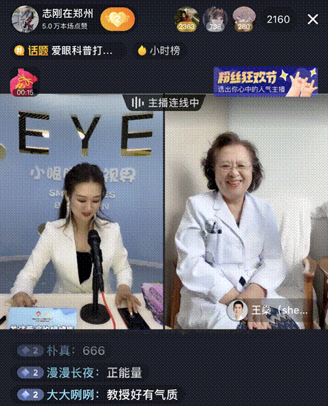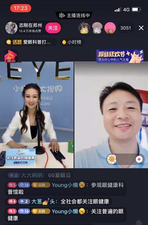 直播間特別邀請到河南豫劇院院長李樹建、鄭州市科協(xié)主席吳予紅、鄭州高新區(qū)管委會創(chuàng)新協(xié)同中心主任焦守剛、中國廣場舞推廣大使美久、溫州醫(yī)科大學(xué)眼健康科普館館長張秋霞、好視力愛眼專項基金秘書長楊靜出席愛眼日啟動儀式,現(xiàn)場倡導(dǎo)愛眼護眼,關(guān)注普遍的眼健康。