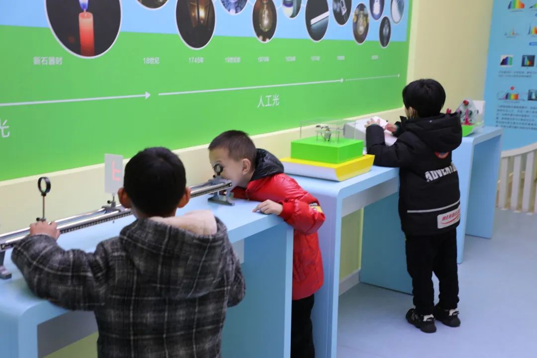視力檢測后,同學(xué)們?nèi)宄扇旱卦诳破震^內(nèi)自由活動,各式各樣有趣的小實(shí)驗(yàn)吸引著一雙雙充滿童真和求知欲的眼睛,在現(xiàn)場志愿者的指引帶領(lǐng)下,同學(xué)們像是發(fā)現(xiàn)了“新大陸”,不時發(fā)出感嘆和驚呼。
