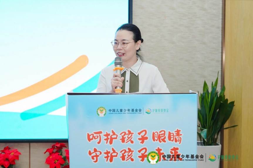 捐贈(zèng)儀式上,杭州市上城區(qū)人民政府辦公室副主任汪菁代表上城區(qū)區(qū)委、區(qū)政府,向中國兒童少年基金會(huì)、愛心企業(yè)及各位來賓表示感謝。她表示,關(guān)愛兒童就是關(guān)注未來、贏得未來。建設(shè)眼健康科普墻(角),發(fā)放愛心護(hù)眼書包并開展公益科普講座可以幫助兒童培養(yǎng)愛眼意識(shí)和習(xí)慣,是對兒童友好的最佳表達(dá)。