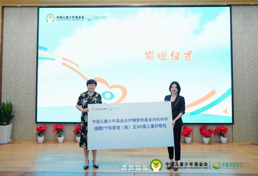 2023年7月28日,中國兒童少年基金會(huì)在杭州市上城區(qū)澎致小學(xué),舉辦“呵護(hù)孩子眼睛 守護(hù)孩子未來”護(hù)瞳愛眼基金公益項(xiàng)目杭州站捐贈(zèng)儀式。
