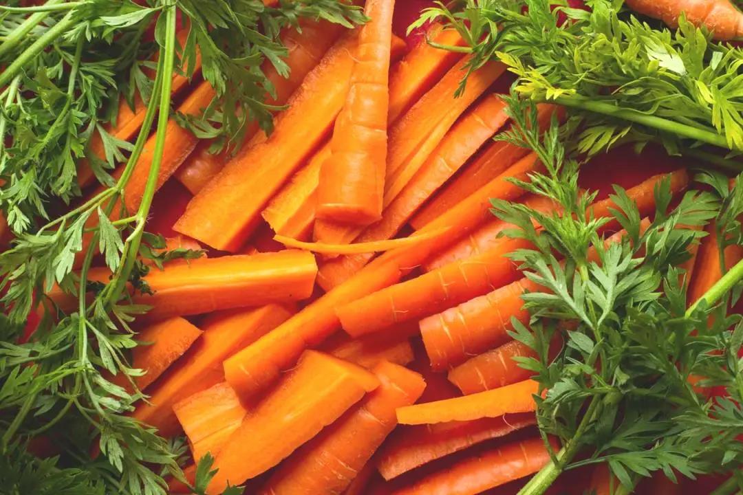 胡蘿卜含有大量胡蘿卜素,這種胡蘿卜素的分子結(jié)構(gòu)相當(dāng)于2個(gè)分子的維生素A,進(jìn)入機(jī)體后,在肝臟及小腸粘膜內(nèi)經(jīng)過(guò)酶的作用,其中50%變成維生素A,有補(bǔ)肝明目的作用。