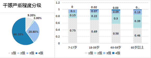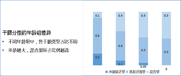 據(jù)好視力眼貼小編調(diào)研,干眼的分型具有年齡組差異,不同年齡組中,各干眼類型占比不同,總體呈現(xiàn)為蒸發(fā)過強型比例最高。隨著年齡的增長,混合型干眼(蒸發(fā)過強型與水液缺乏綜合型)的占比逐漸升高,且嚴(yán)重程度歲年齡增加而增加。