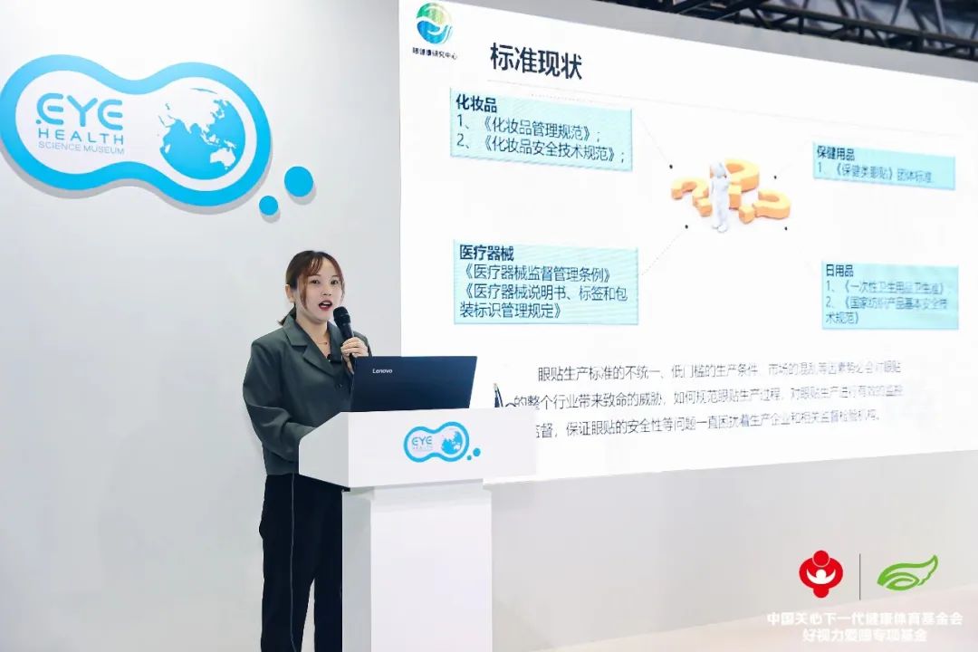 曹萌雅女士在《眼貼行業(yè)標準現狀與發(fā)展方向》中分享到,針對眼貼類產品普遍缺乏行業(yè)標準與團體標準,監(jiān)管依據不足等情況,我們聯(lián)合多方制定編寫了多項標準與指南,先后于2017年2月23日發(fā)布《保健類眼貼》團體標準,2021年10月30日《中醫(yī)藥治療干眼臨床應用指南》,2022年6月21日《護眼產品緩解視疲勞效果評價方法》團體標準,持續(xù)助推眼健康行業(yè)良性發(fā)展。