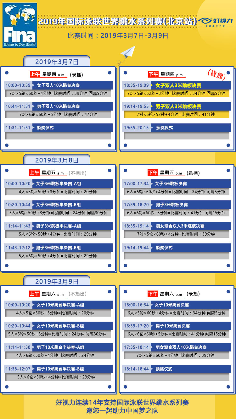 3月7日-9日,由好視力支持的2019國際泳聯(lián)世界跳水系列賽(北京站)將在水立方盛大開賽。