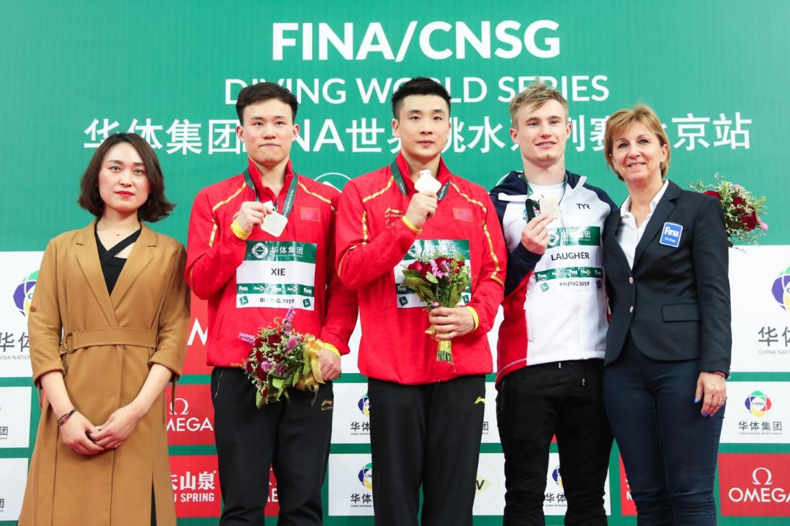 曹緣(右三)搭檔謝思埸摘得男子雙人3米板冠軍